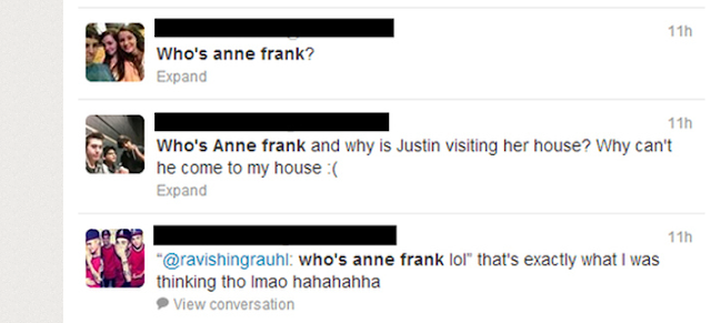 He had an oops when he said that Anne Frank would have been a Belieber. This is how Beliebers responded (get these kids some schooling):