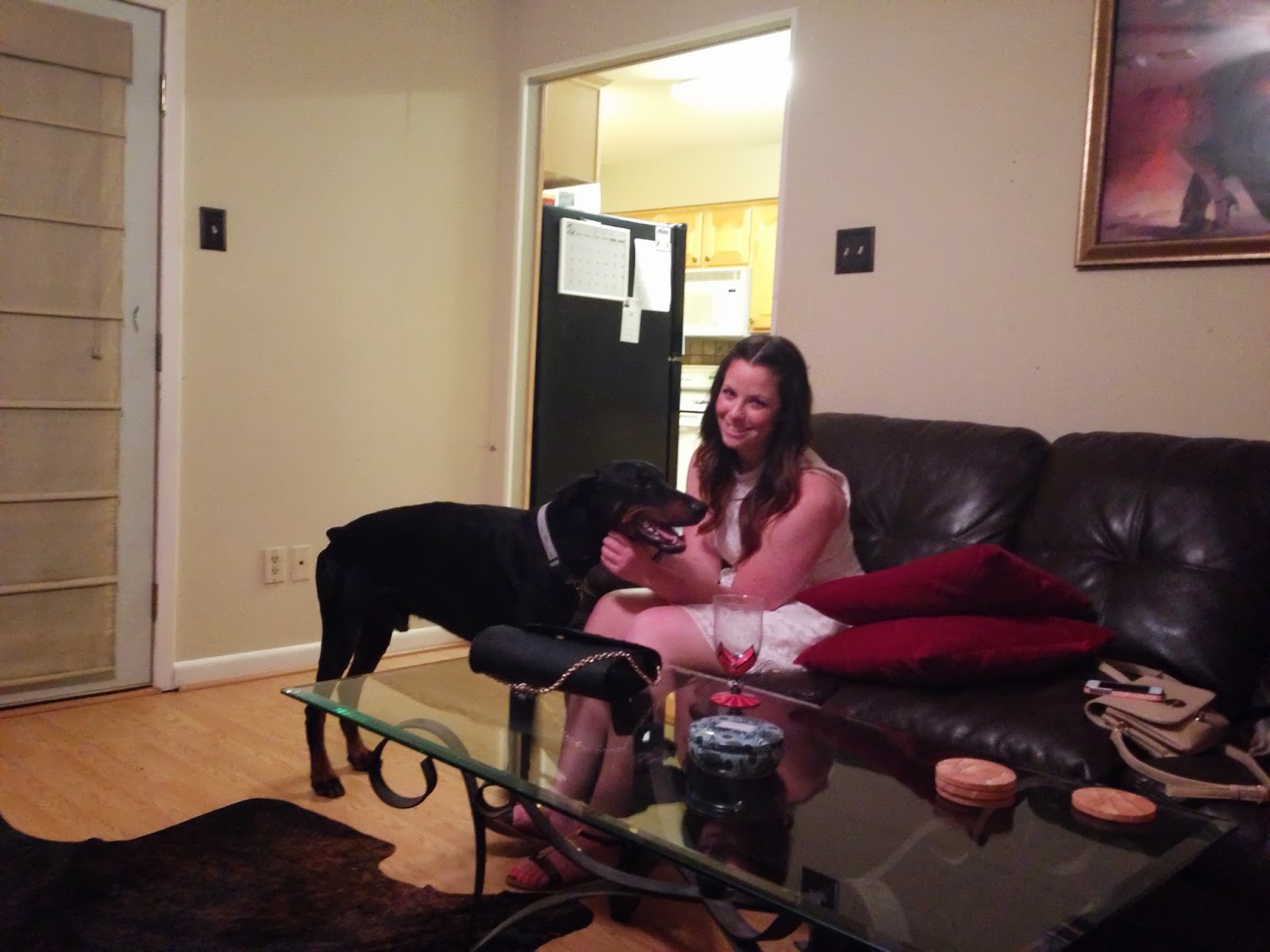 Came over to my house for drinks and met the dog.