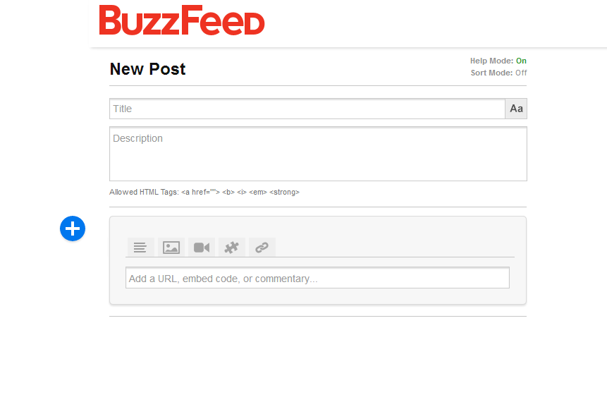 5. It's easiest if you just copy and paste your html from your blog into the post. So type out a title and description. Then click under the blue plus sign where it says Add a URL, Embed code, or commentary. This is where your HTML will go. Click the first icon (the one that looks like Lined paper) to add it.