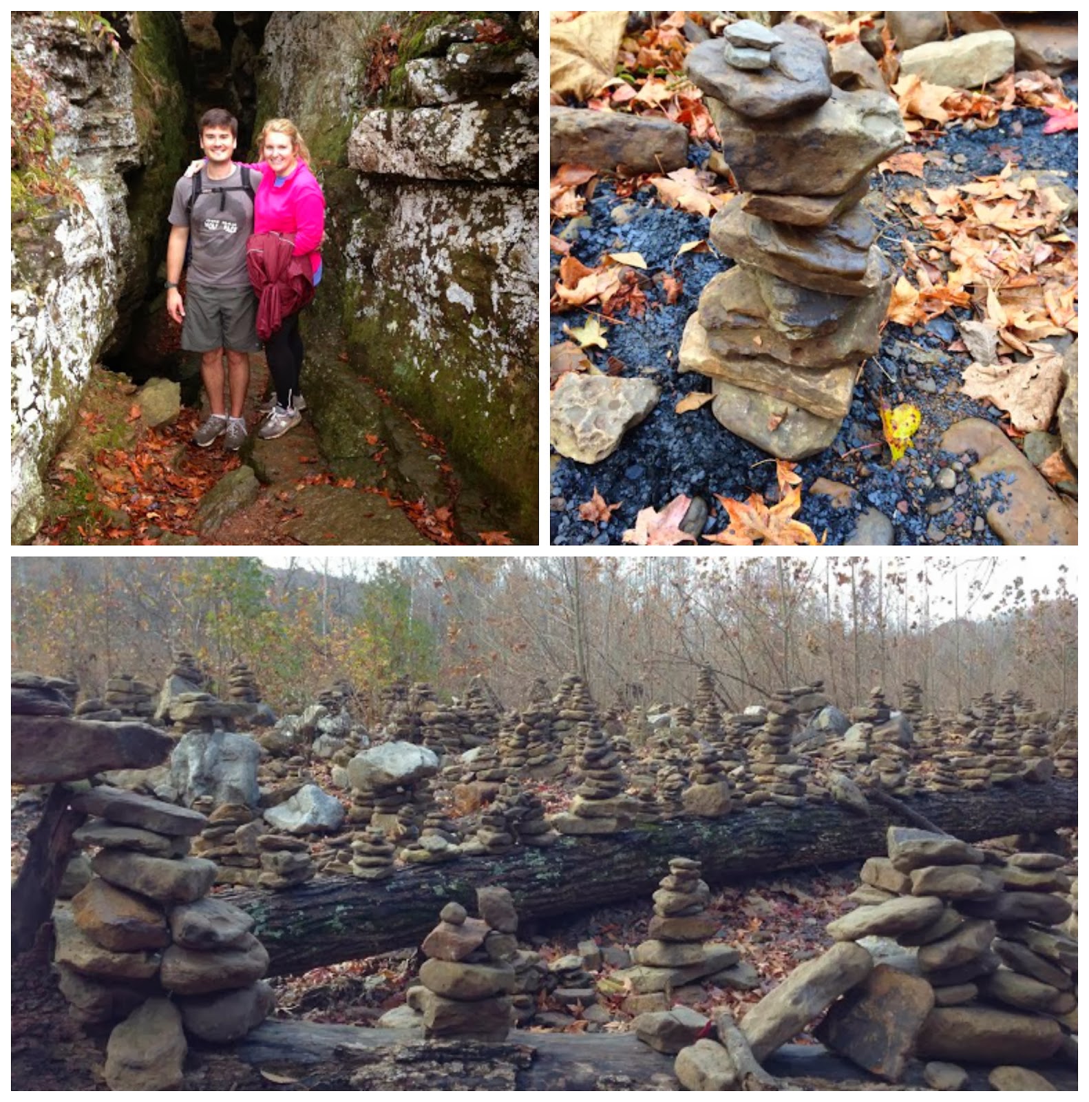 On Saturday we woke up bright and early around 10 and made some campfire breakfast burritos. Despite the rain we took a hike. If you haven't been to Arkansas or Devil's Den I suggest you make the trip. The scenery is gorgeous, rocks that cut in and out, caves, hiking trails and trees that have the most beautiful changing leaves.