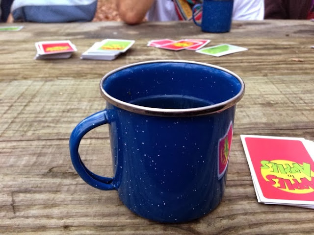 So what do you do with no cell service? You drink wine out of tin cups and play apples to apples. If you're wondering, I lost horribly.
