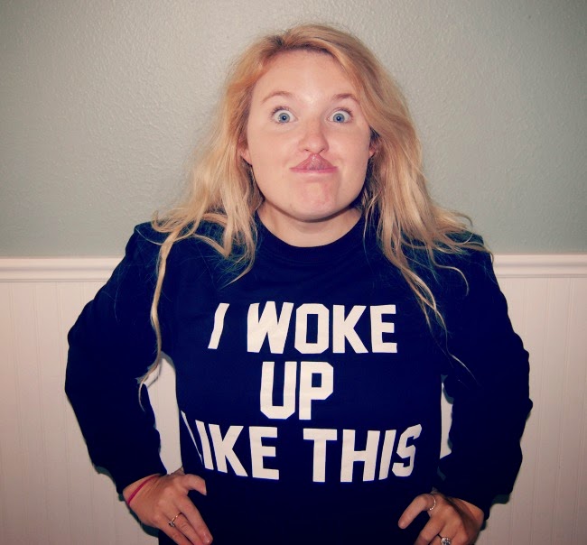 Sometimes I have a hard time being okay with myself. I think all women are so quick to look at their flaws, rather than their strengths. So instead of putting on makeup, which I usually do every time I take a photo for this blog, I went sans make up. I did what the sweatshirt said.