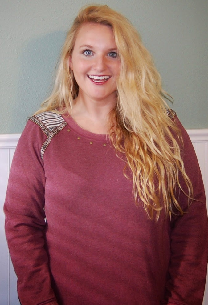 I adore this detailed sweatshirt. Not only is it maroon- I'll be cheering on the Aggies this weekend (Michael went to A&M) it's great for hanging around the house. I'd also wear this on a date shopping at the mall (or for Halloween costumes), going to our favorite BYOB Italian restaurant, or pumpkin carving!