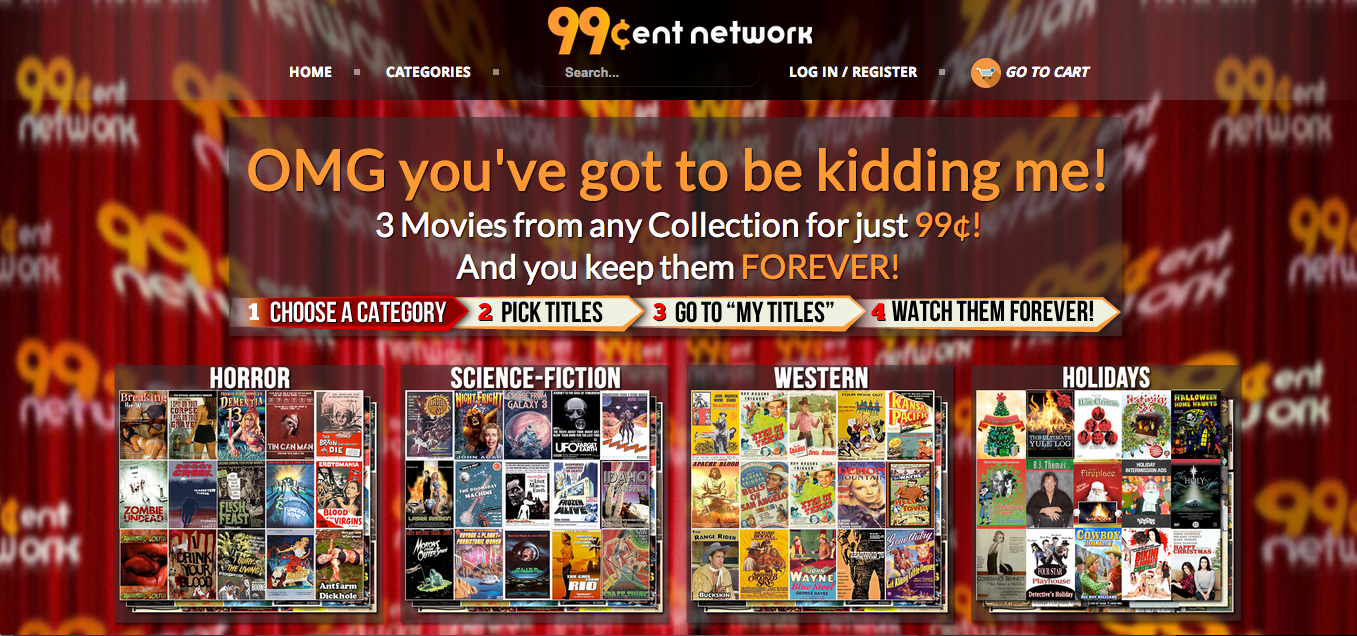 However, when it's something I do want AND it's cheap, I'm happier than a kid on Christmas. Such is the case with the 99 Cent Network. This link will not be live until 1PM! All the movies you could ever want for pennies! You can make your own collection- three movies for 99 cents (I mean, how can you NOT do this) or 10 movies for $1.99! Then you can share your movies with friends and family members with just one easy click. This is the perfect stocking stuffer.